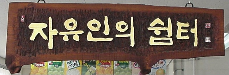 신일고등학교 학생들의 휴식 공간에 설치된 서각 작품.