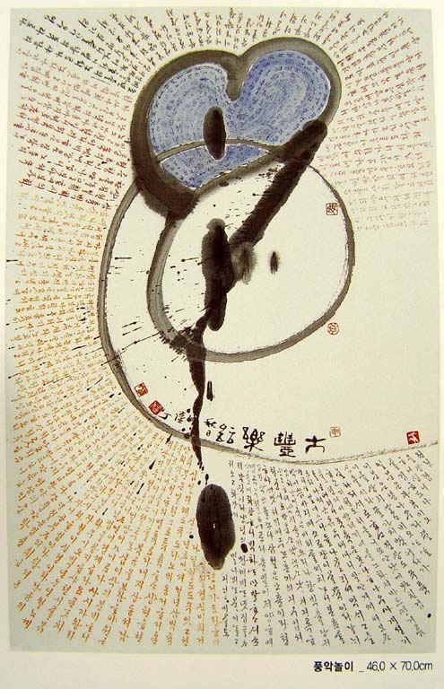 풍악놀이를 할 때 행매를 돌리는 이미지를 그리고 주변은 농가월령가를 환형으로 썼다.