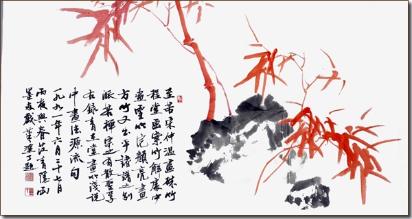 춘강, 청은과 함께 합작한 朱竹 (1991년 6월 27일 丙夜)