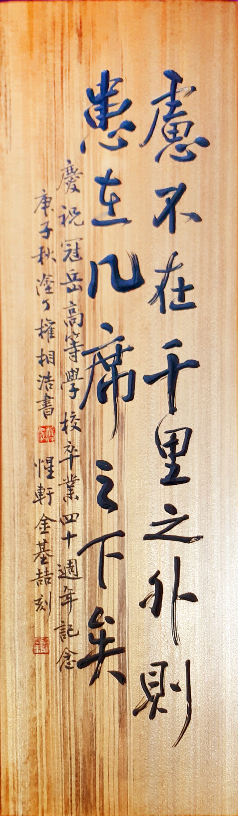 下端脇書: 경축 관악 고등학교 졸업 40주년 기념 경자 구월 십이일 도정 권상호 서 성헌 김기철 각