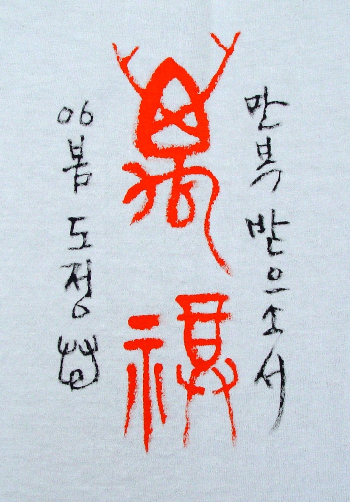 T셔츠 디자인 - 萬福(만복)이라 썼다.