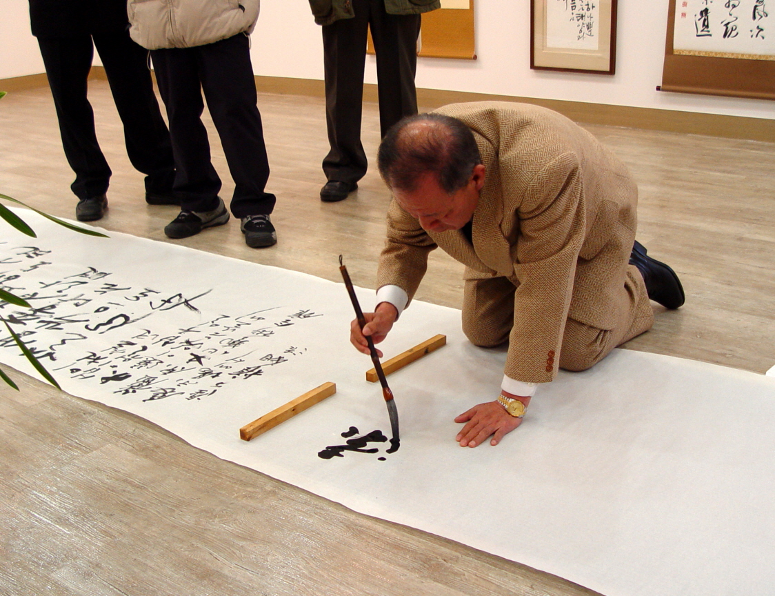 위는 소생의 라이브 서예, 아래는 여기에 이어서 붓을 잡으신 추공 권영대 선생님. 위 사진에 소산 최영태님, 농원 김용욱님이 보인다.