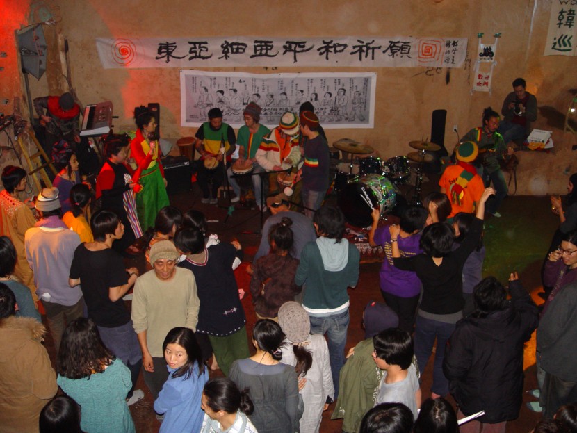 일본의 집시풍의 평화주의자들이 전국을 걸어서 한바퀴 돌고