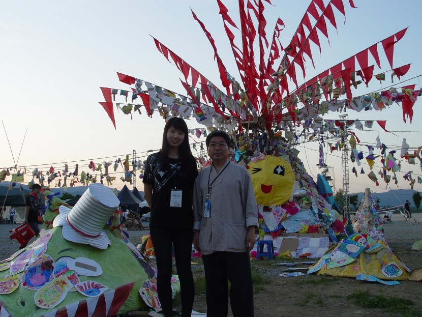 라이브 서예를 마치고 주위를 둘러보기로 했다. 생각보다 많은 외국인 깨비들이 머리 위에 뿔을 달고 나타났다. 축제 광장 중심에는 티베트의 산꼭대기처럼 화려한 깃발이 사방을 압도하듯 펄럭이고 있었다. 내가 어렸을 적 시골 마을에서 보았던 곳집이나 성황당처럼 귀신이 금방이라도 나올 듯하다.
