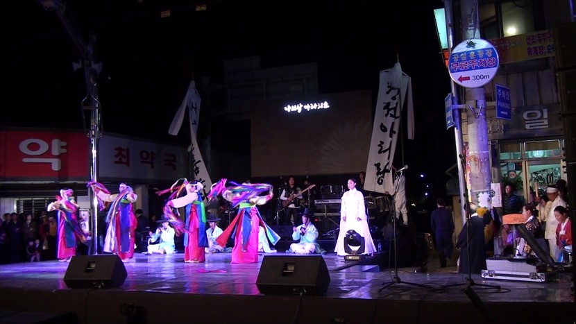 마침 유서 깊은 제36회 정선아리랑제(9월 30일~ 10월 3일)에 초대받아 2박 3일간 머물면서 아리랑과 함께 올림픽과 국운, 강원도, 58년 개띠 등을 생각하며 보냈다. 개막공연(이길영 연출)에서 고구려 밴드와 강릉 단오 굿의 장단에 맞추어 기다란 두 개의 깃발에 ‘정선아리랑, 세상을 품는다.’는 내용을 큰 붓으로 쓰고, 선녀들은 무대 양쪽의 장대 높이 걸어 올렸다.