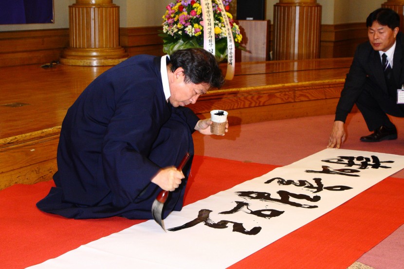 금년에는 라이브 서예로 국회와 인연이 깊다. 자살 예방을 위한 ‘생명사랑’ 라이브 서예, 정의화 국회부의장 저 <이름값 정치> ‘출판기념’ 라이브 서예에 이어 이번에는 ‘국회의원 시낭송 예술제’ 축하를 위한 라이브 서예를 펼쳤다.