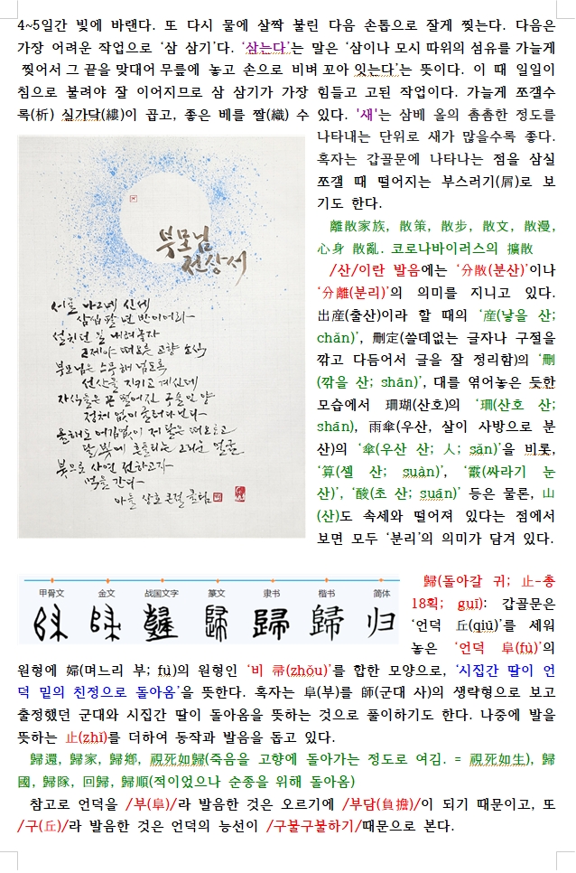 금년은 코로나 바이러스의 창궐로 귀향이 어렵게 되었다.