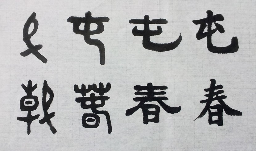春(봄 춘) 자의 갑골문, 금문, 전서 등을 살펴보면 지금의 모습과 사뭇 다르다. 원래 春(춘) 자는 ‘艹(풀 초)+屯(언덕 둔)+日(해 일)’의 세 부분으로 이루어진 멋쟁이 글자였다. 태양[日]의 온기를 받아 언덕[屯] 위에 풀[艹]이 돋는 그림 같은 글자이다.