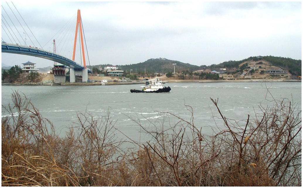 울돌목(명랑해)의 새찬 물결, 임진왜란시 이순신과 수군의 함성이 묻어 있다.