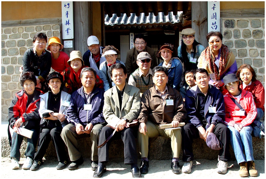 전통을 세우자 - 추사 고택 정문 앞에서 - 여기에 얼굴이 보이지 않는 사람이 누구누구지?