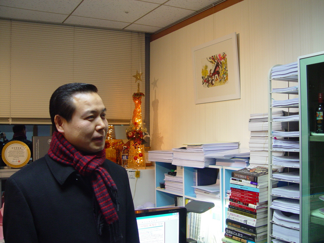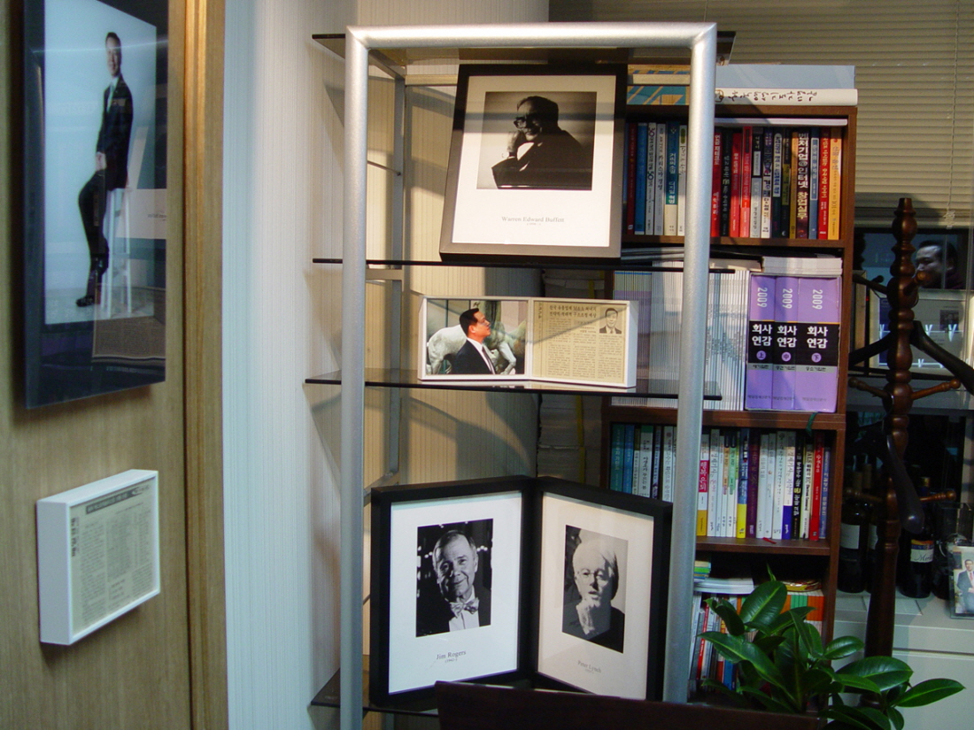 그는 존경하는 인물을 책상 옆에 모셔두고 있었다.