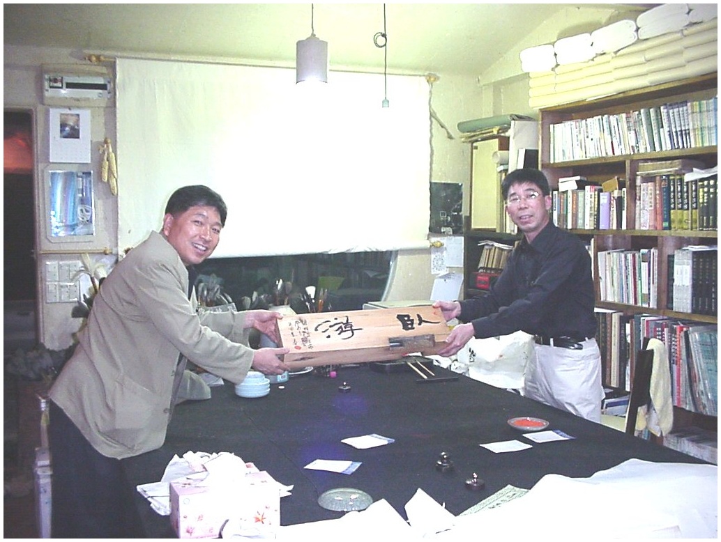 객경 안해림씨(우)가 나에게 휘호를 증정하고 있다.