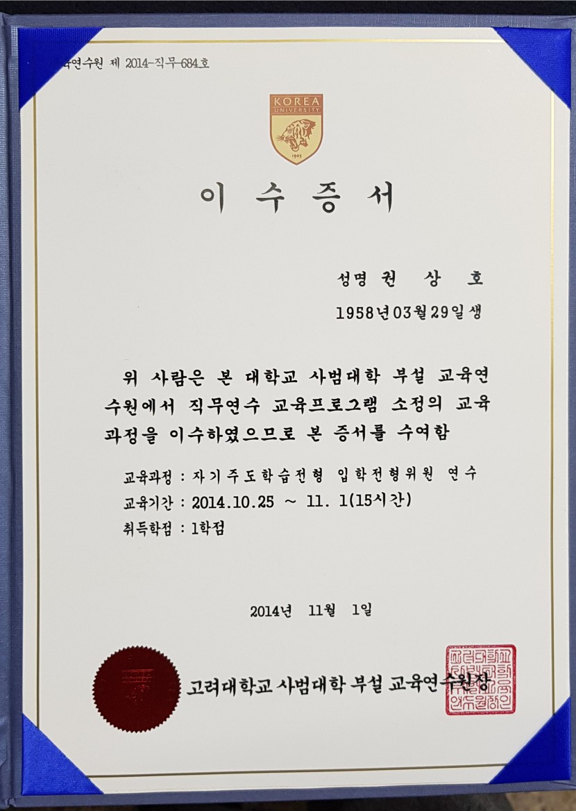 직무연수 교육프로그램 이수증서 - 고려대학교