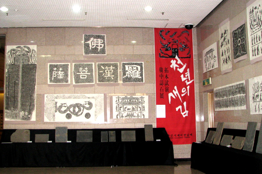 이번 행사에는 서예의 작품뿐만이 아니고, 서각(나무에 각을 한 작품)작품도 전시되고 있으며, 생활서예라고 해서 일상 생활용품에 서예를 접목시킨 작품을 전시하고 있습니다. 그리고 집에 문패가 필요한 분은 도자기에 이름을 써서 구워주는 행사도 라구요. 그리고 아이들을 데리고 가면 서예작품을 직접 탁본할 수 있는 공간도 만들어져 있습니다.