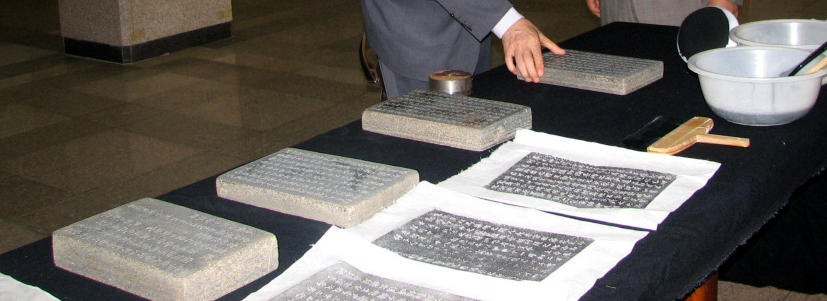 중국의 서예는 청나라 시기에와서 부착학의 쇠퇴를 접함과 동시에 비석에 대한 존대의 붐을 일으켰습니다. "篆刻"영문명(seal character)은 중국의 진나라와 한나라시대로부터 그 뿌리를 찾아서 풍격을 살리고 부단히 새로운 활력을 부여해 왔습니다.