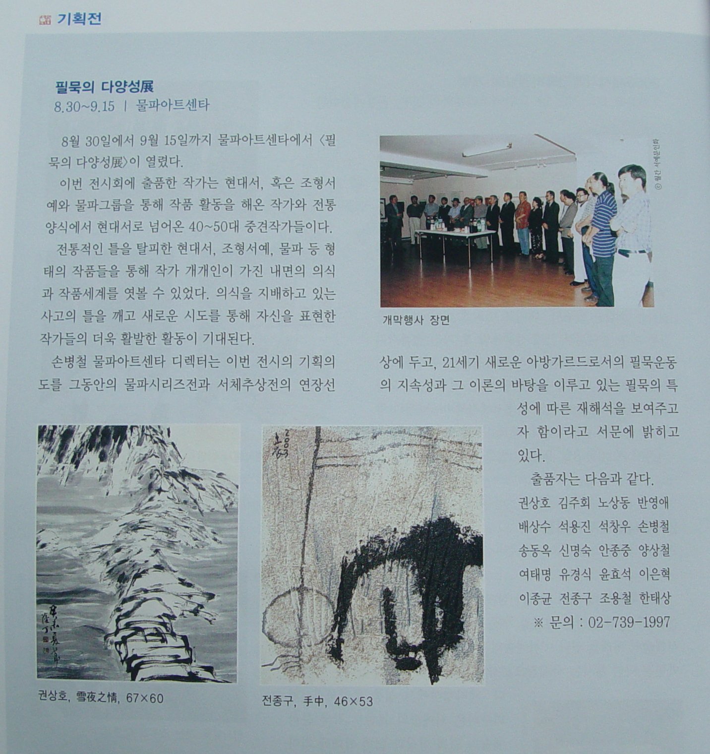 '필묵의 다양성전'기사가 월간 <서예문인화> 2003년 10월호에 게재되었다.