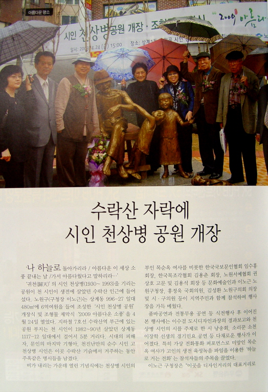 '수락산 자락에 시인 천상병 공원 개장'에 관한 기사가 실렸다.