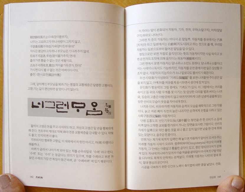 라이브 서예. 고향 가는 길(표지에 소개)