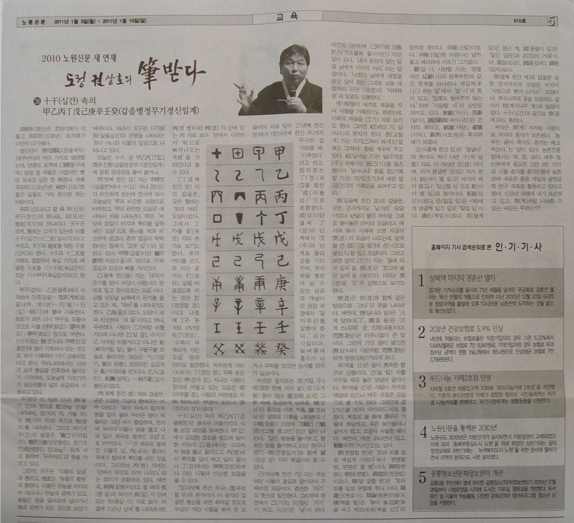 2011. 노원신문 연재- 도정 권상호 筆받다 - 26. 十干(십간) 속의 甲乙丙丁戊己庚辛壬癸(갑을병정무기경신임계)