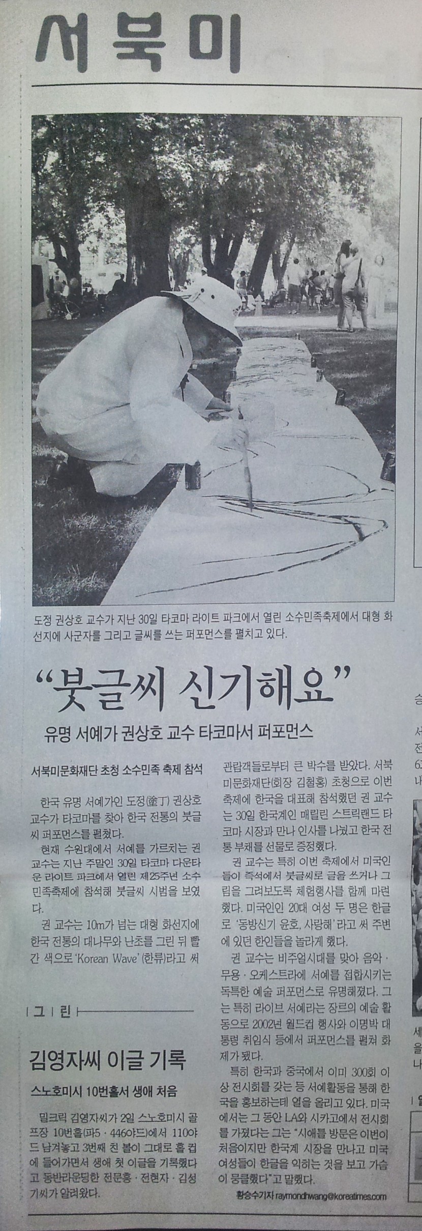 미주 한국일보(황승수 기자)에 소개되었습니다.
