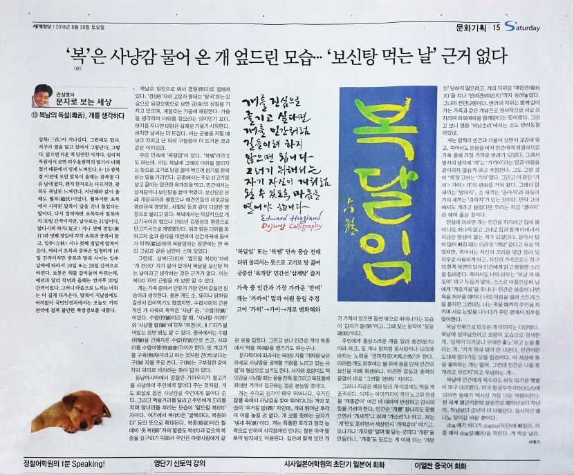 세계일보 문화기획 - 문자로 보는 세상 19, 20