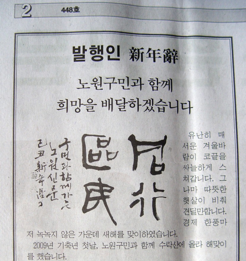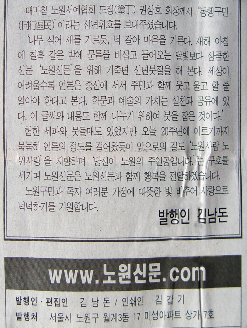 노원 우리신문 신년호에 저의 글씨가 소개되었습니다.