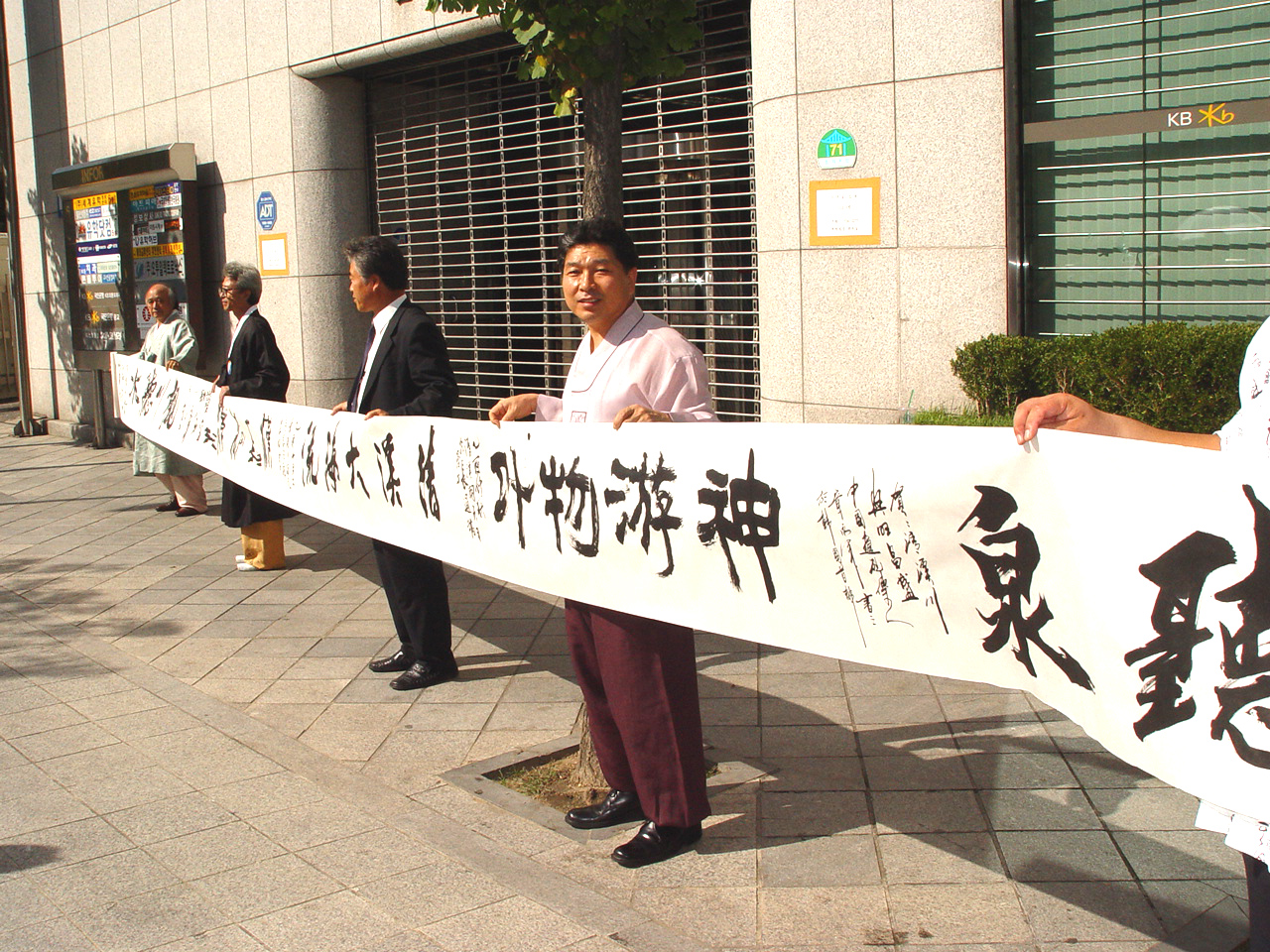 ‘High Seoul 페스티벌’등의 문화행사장에서도 봉고, 대금, 기타 연주에 맞춰 붓쇼를 보인 적이 있는데, 아가씨와 어린이들은 물론 외국인들도 필흥(筆興)을 견디다 못해 등이나 가슴을 들이대고 티셔츠에다 글씨를 써 달라고 부탁하거나 체험을 하고 싶어 할 때면 신명이 뻗힙니다. 그로 인해 서예에 대한 관심을 갖는 사람이 한명이라도 늘어난다면 더 없는 보람이죠. 서예가 고리타분한 예술이라든가 특별한 사람들만이 즐길 수 있는 어려운 취미라는 편견은 이제 버리세요.