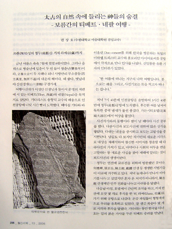 '티베트 네팔 기행문' 연재 시작 - <월간서예> 10월호에