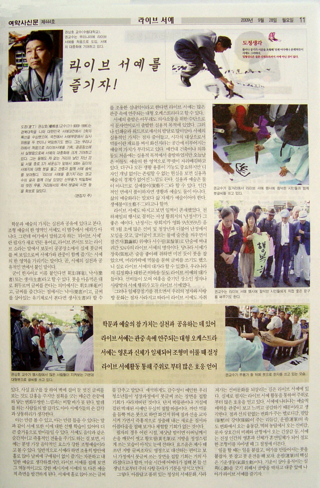 전면에 라이브서예 소개- 2009서울차없는날 기념