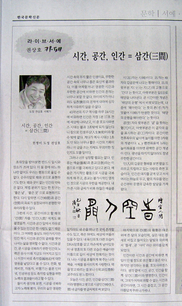 한국문학신문 칼럼- 시간 공간 인간=삼간 (제2호)