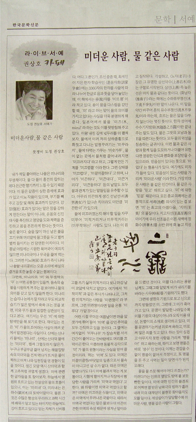 한국문학신문 칼럼- 미더운 사람=상선약수 (제3호)