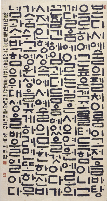 서예의 가치 기준은 서격의 우열과 비례한다. 좋은 서품이란 그 서격의 풍김이 어떠하느냐에 있다. 인간의 품격처럼 서의 품격 또한 그 깊음이 한량없다. 가시적 내면성의 추구이기때문에 자기 내면의 농축된 역량의 추구 없이는 직관력이 발휘되기 힘들다. 서작의 경우 기초적인 과정을 거친 다음엔(기초란 점획의 운필과 결자와 장법에 이르는 필력의 습득 단계를 거쳐 의림의 단계까지을 이름) 서격의 터득에 고심해야한다. 그러기 위해선 안목이 있어야 하는데 그 안목을 기르는 일은 짧은 시일에 되는 일이 아니고 천부적 예성을 바탕으로 수 많은 전적을 대하는 부단한 연찬에서 자연스럽게 깨우쳐 오는 것이다. 서품을 비교 평가하는 경우도 그러한 입장에서 절품을 찾아 내는 일이다. 때문에 평자도 그 높이에 이르지 못하면 오류를 범하기 쉽다. 이런 원칙을 바탕으로 서작을 하는 경우나 다 같이 그 정신으로 하나이어야 한다. 우리는 흔히 포장된 모습에 급급하기 쉽다. 그러나 그보단 내용을 찾은데 끊임없이 힘써야 한다. 우선 형상에 있어서 점획은 깊이 심어 졌는가, 내용에 있어선 탈속되어 가는가를 부단히 고민할 때 그 서품은 순수로 다가올 것이다. 분명히 말해 법전을 근거하지 않은 서품은 허구이지만 또한 그러한 근거들이 밑거름된 자기 것의 재생산이 없다면 그건 서가로서 거짓이다. 쉽게 말해 닯은데서 안주하고 그것이 자기 서품인양 생각한다면 얼마나 큰 착각인가. 남의 집에 살면서 내집이라고 생각하는 꼴이다. 근거있는 벗어남만이 자기가 존재하는 길이다. 그렇다고 앞에 말한 바와 같이 가시적 외형에만 변화를 추구한다면 그건 일시적 포장의 효과로 눈속임할 뿐이고 서의 진수인 생명력을 지닌 서품은 나오지 못할 것이다. 서의 내면의 신비에 접근하려면 오직 임리한 예로 거슬러 파고 들어야 한다. 그것만이 가작이 나올 수 있는 길이고 서작의 바른 길이라 믿는다. 근자에 홍수처럼 쏟아져 나오는 서품과 모두가 작가연하는 조숙의 병폐와 경쟁 같은 전시들을 대하면서 서예술의 전도된 가치에 대하여 우려스러움이 너무 크다. 우후죽순으로 난립된 공모전이나 거기에서 주어지는 딱지들이 서예술의 가치에 대한 공인돈 기준으로 기정하려는 풍토는 서예술의 본연의 정신에 배반일뿐 아니라 오염이라 아니할 수 없다. 모름지기 좁은 공간에서 그 본래의 정신으로 대상과의 피나는 씨름만이 참다운 예술가의 정신이고 정도이다. 그래서 수 없는 시행착오가 거듭되면서 개안되는 과정을 우리는 소중히 배워야한다. 참된 작가 정신은 창조 관리 역사의식으로 나는 믿고 있다. 작가의 야망은 현실영합이 아니고 자기 분신이 후세에 어떻게 하나의 생명체로 존재하느냐에 있다. 그렇다면 작가 정신은 곧 자기 분신을 탄생시키는 서작의 태도와 직결되지 않겠는가. 다시 강조해 말 하거니와 겉은 속 때문에 존재되어야 하고 나아가 숨은 생명체를 끌어내는 길로서 존재되어야 하며 이것이 궁극에는 겉과 속의 합일로 일치할 때 비로소 긴 생명력을 가진 작품으로 존재될 것이고 그와 함께 한 사람의 작가도 존재될 것이다. 작가가 작품을 탄생시키지만 작품이 작가를 존재시킨다는 사실을 우리는 절대 가치로 명심해야 할 것이다. 문화양식의 사회 공급도 뜻이 있고 저변확대도 뜻이 있는 일이지만 작가가 밖으로 눈이 너무 많이 가다보면 진짜 생명체가 나올 좁은 공간은 허세와 공허로 가득찰 수 밖에 없다. 그리고 본질 외적인 허황된 구호들만 난무하게 되는데에 큰 문제가 있다. 우리는 서작의 기본 정신이 결국 본질에 귀의한다는 진리에 입각해 원리에 몰입하는 길만이 작가의 본령임을 알아야 한다. 수(守),파(破),리(離)가 창조의 과정이고 창조자가 추구할 이상인데 지킴만도 얼마나 어려운 일이어늘 어느 세월에 깨고 이탈의 변신에 든단 말인가. (1990년 월간서예)