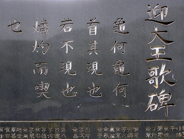 首其現也(수기현야) 머리를 내어라. - '首'는 '수로왕' 상징