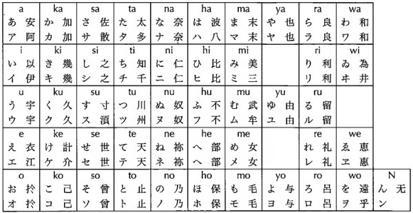 가타카나는 楷書의 일부분을 떼어 만든 문자로, 글자 모양이 직선적이며