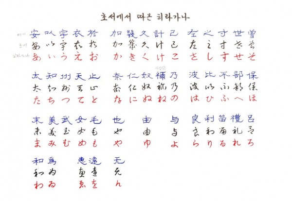 - 草書에서 따온 히라가나, 楷書에서 따온 가타카나 -